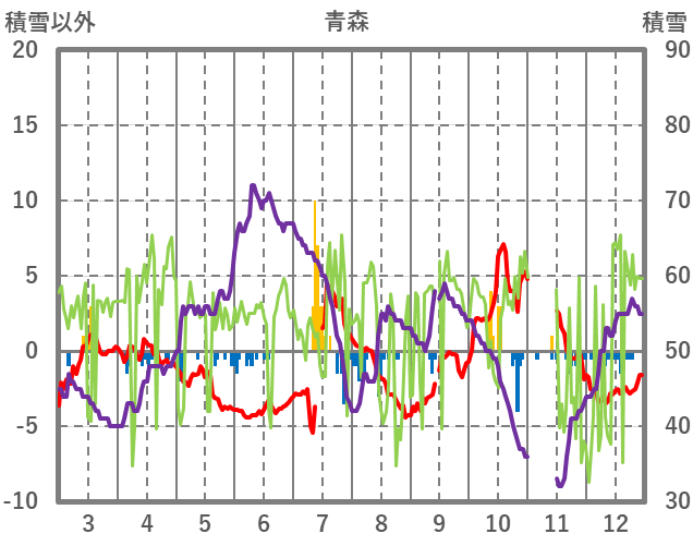 | 日 | 時 | 気温 | 降水 | 風向/風速 | 日照 | 積雪 | 降雪 |