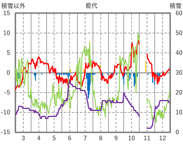 | 日 | 時 | 気温 | 降水 | 風向/風速 | 日照 | 積雪 | 降雪 |