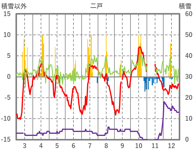 | 日 | 時 | 気温 | 降水 | 風向/風速 | 日照 | 積雪 | 降雪 |