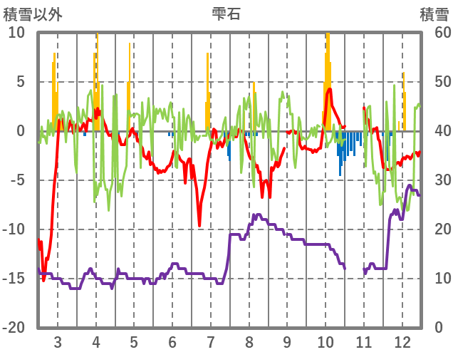 | 日 | 時 | 気温 | 降水 | 風向/風速 | 日照 | 積雪 | 降雪 |