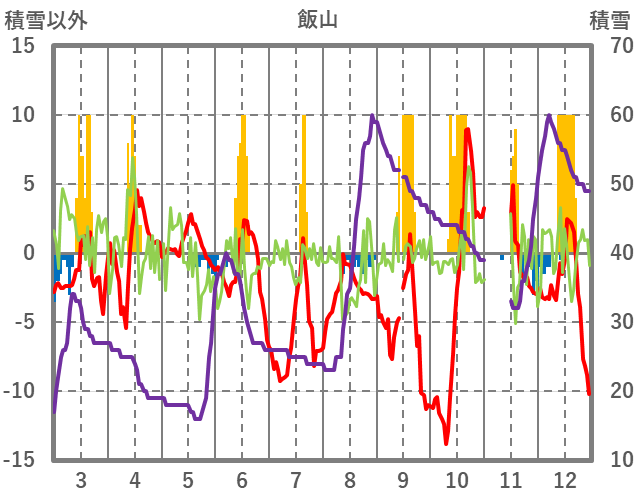 | 日 | 時 | 気温 | 降水 | 風向/風速 | 日照 | 積雪 | 降雪 |