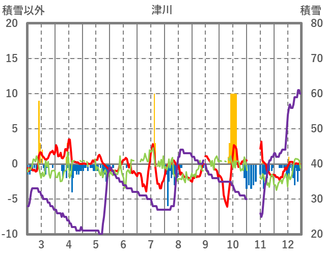 | 日 | 時 | 気温 | 降水 | 風向/風速 | 日照 | 積雪 | 降雪 |