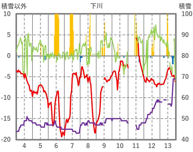 | 日 | 時 | 気温 | 降水 | 風向/風速 | 日照 | 積雪 | 降雪 |