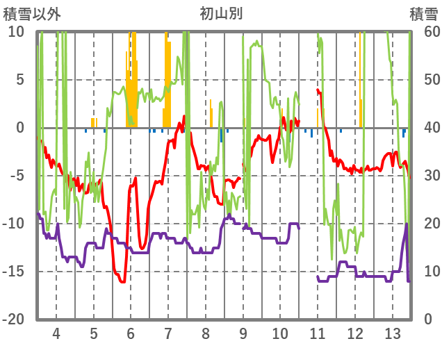 | 日 | 時 | 気温 | 降水 | 風向/風速 | 日照 | 積雪 | 降雪 |