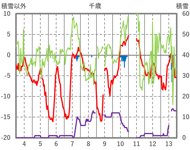 | 日 | 時 | 気温 | 降水 | 風向/風速 | 日照 | 積雪 | 降雪 |