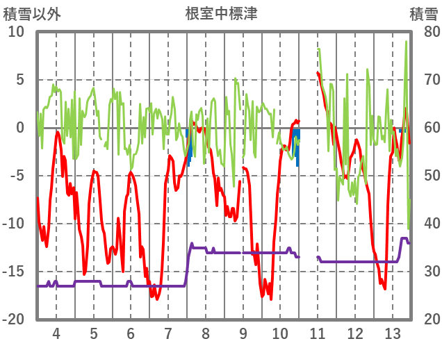| 日 | 時 | 気温 | 降水 | 風向/風速 | 日照 | 積雪 | 降雪 |