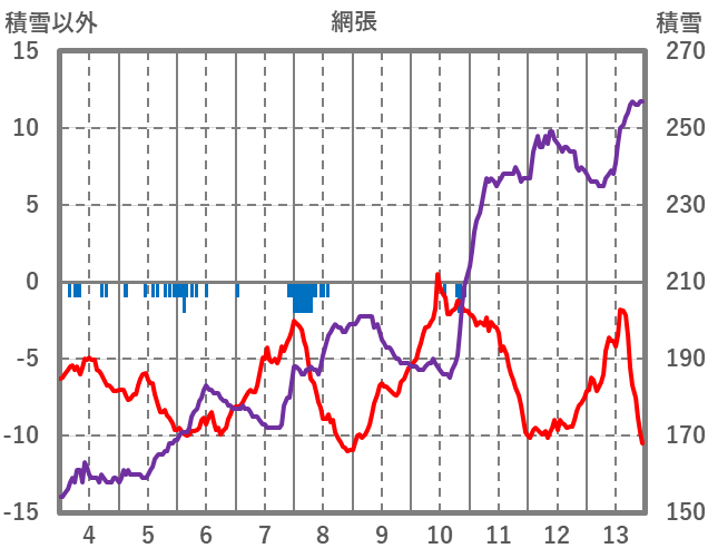 | 日 | 時 | 気温 | 降水 | 風向/風速 | 日照 | 積雪 | 降雪 |