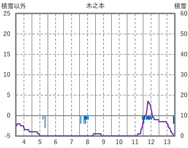 | 日 | 時 | 気温 | 降水 | 風向/風速 | 日照 | 積雪 | 降雪 |
