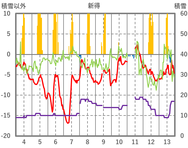 | 日 | 時 | 気温 | 降水 | 風向/風速 | 日照 | 積雪 | 降雪 |