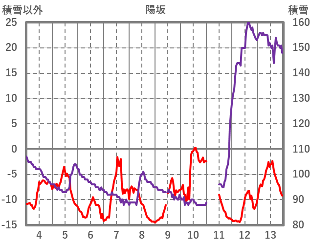 | 日 | 時 | 気温 | 降水 | 風向/風速 | 日照 | 積雪 | 降雪 |