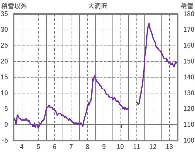 | 日 | 時 | 気温 | 降水 | 風向/風速 | 日照 | 積雪 | 降雪 |