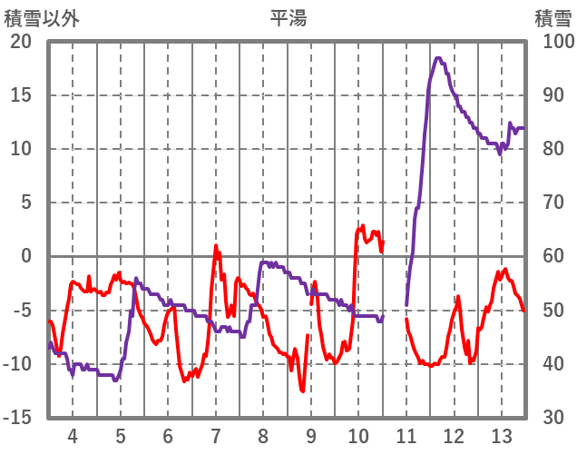 | 日 | 時 | 気温 | 降水 | 風向/風速 | 日照 | 積雪 | 降雪 |
