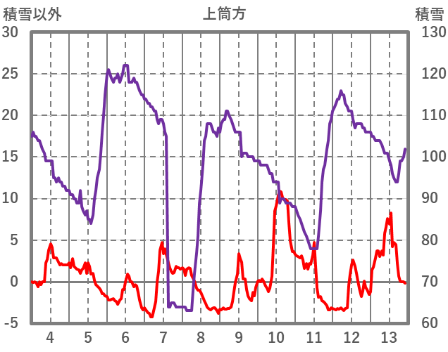| 日 | 時 | 気温 | 降水 | 風向/風速 | 日照 | 積雪 | 降雪 |
