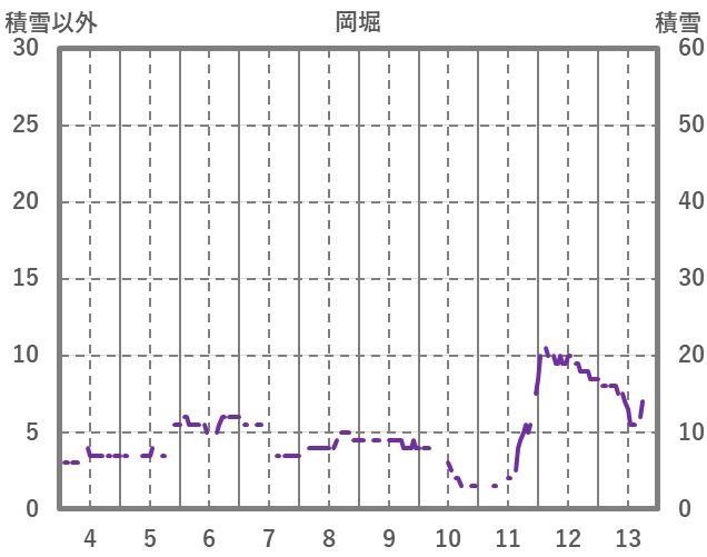 | 日 | 時 | 気温 | 降水 | 風向/風速 | 日照 | 積雪 | 降雪 |