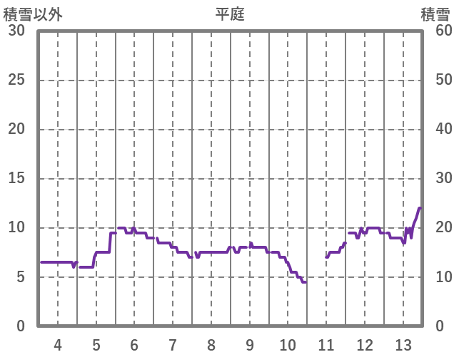 | 日 | 時 | 気温 | 降水 | 風向/風速 | 日照 | 積雪 | 降雪 |