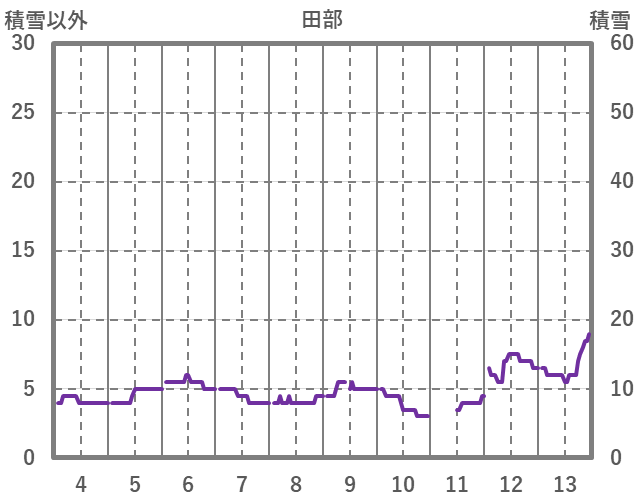 | 日 | 時 | 気温 | 降水 | 風向/風速 | 日照 | 積雪 | 降雪 |