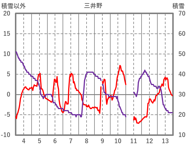 | 日 | 時 | 気温 | 降水 | 風向/風速 | 日照 | 積雪 | 降雪 |