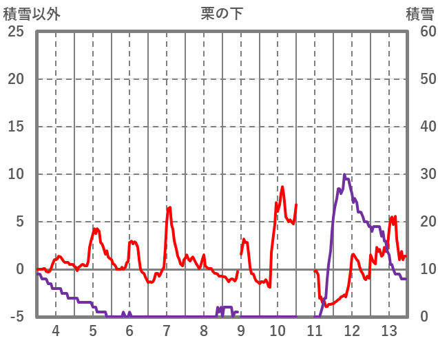 | 日 | 時 | 気温 | 降水 | 風向/風速 | 日照 | 積雪 | 降雪 |