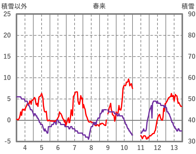 | 日 | 時 | 気温 | 降水 | 風向/風速 | 日照 | 積雪 | 降雪 |