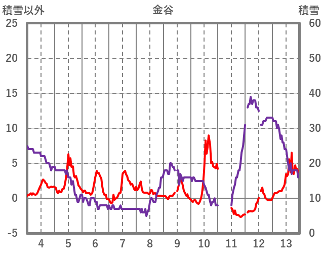 | 日 | 時 | 気温 | 降水 | 風向/風速 | 日照 | 積雪 | 降雪 |