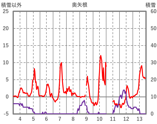 | 日 | 時 | 気温 | 降水 | 風向/風速 | 日照 | 積雪 | 降雪 |