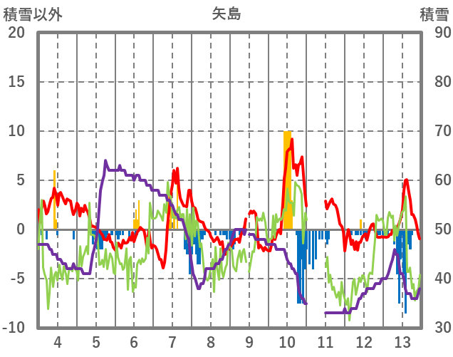 | 日 | 時 | 気温 | 降水 | 風向/風速 | 日照 | 積雪 | 降雪 |