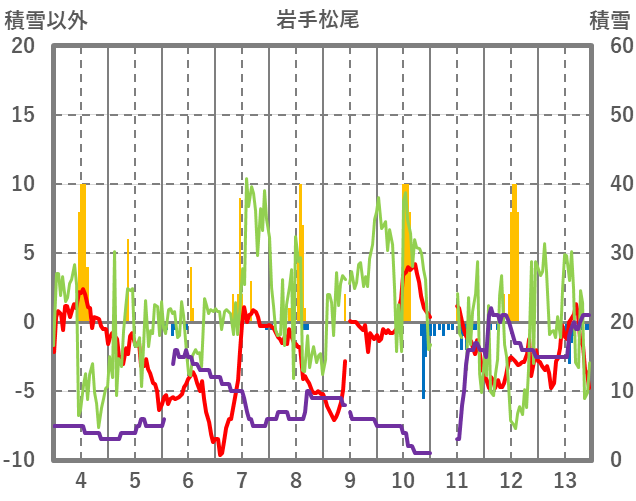 | 日 | 時 | 気温 | 降水 | 風向/風速 | 日照 | 積雪 | 降雪 |
