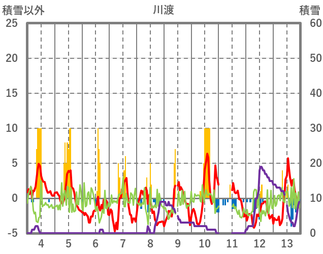 | 日 | 時 | 気温 | 降水 | 風向/風速 | 日照 | 積雪 | 降雪 |