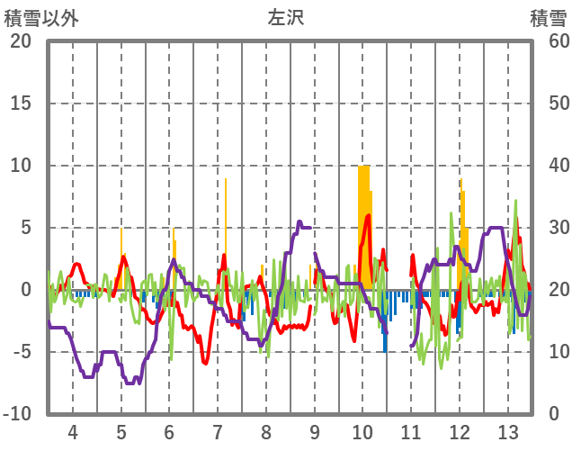 | 日 | 時 | 気温 | 降水 | 風向/風速 | 日照 | 積雪 | 降雪 |