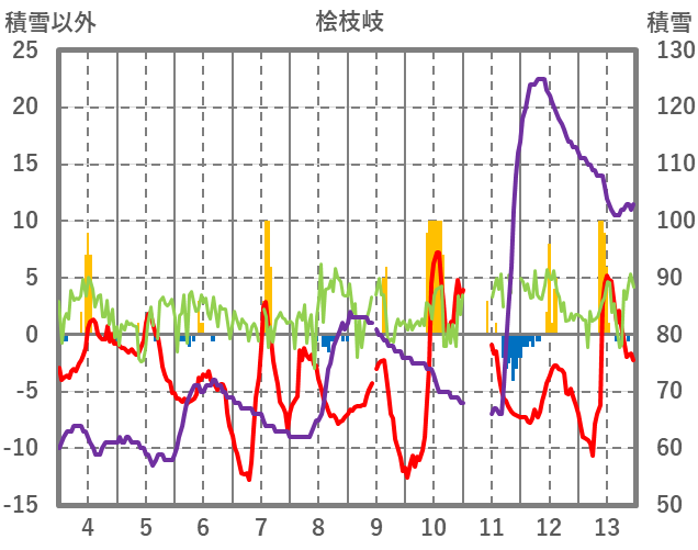 | 日 | 時 | 気温 | 降水 | 風向/風速 | 日照 | 積雪 | 降雪 |