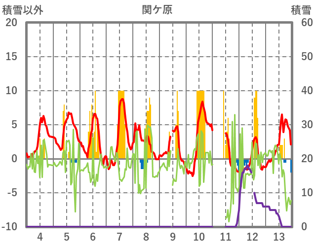 | 日 | 時 | 気温 | 降水 | 風向/風速 | 日照 | 積雪 | 降雪 |