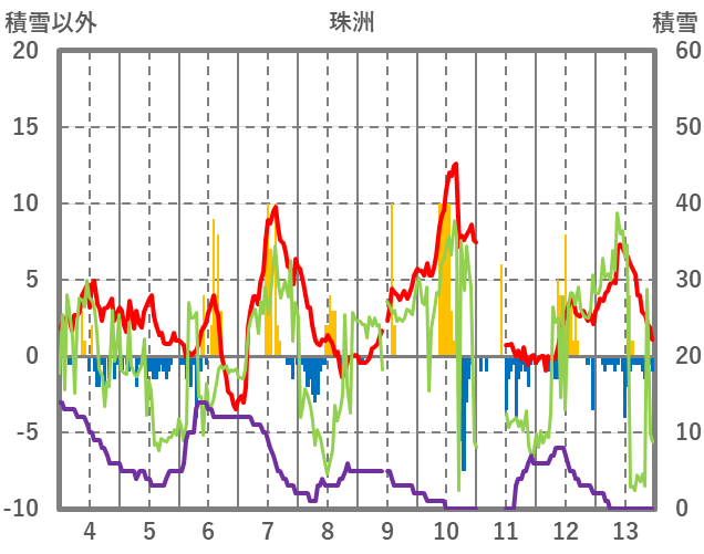 | 日 | 時 | 気温 | 降水 | 風向/風速 | 日照 | 積雪 | 降雪 |