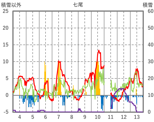 | 日 | 時 | 気温 | 降水 | 風向/風速 | 日照 | 積雪 | 降雪 |