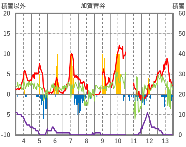 | 日 | 時 | 気温 | 降水 | 風向/風速 | 日照 | 積雪 | 降雪 |