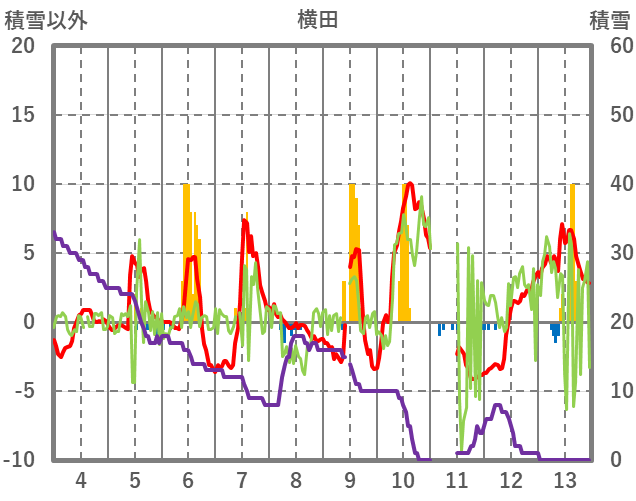 | 日 | 時 | 気温 | 降水 | 風向/風速 | 日照 | 積雪 | 降雪 |
