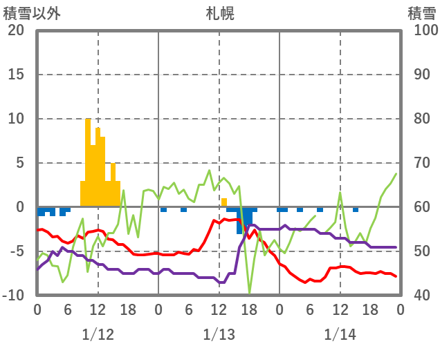 | 日 | 時 | 気温 | 降水 | 風向/風速 | 日照 | 積雪 | 降雪 |