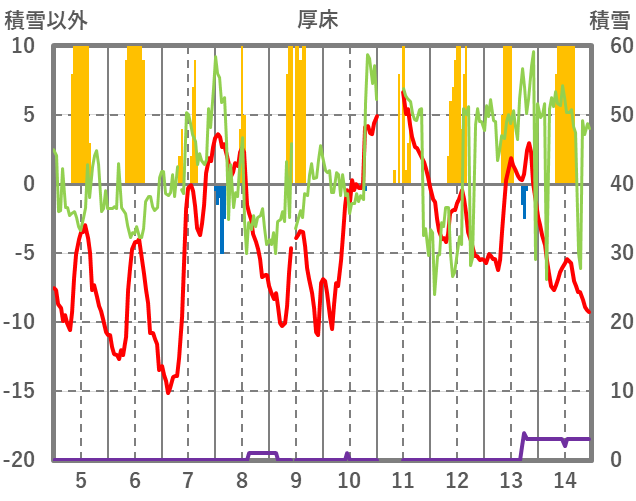 | 日 | 時 | 気温 | 降水 | 風向/風速 | 日照 | 積雪 | 降雪 |