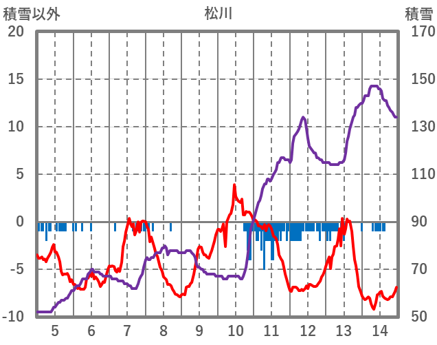 | 日 | 時 | 気温 | 降水 | 風向/風速 | 日照 | 積雪 | 降雪 |