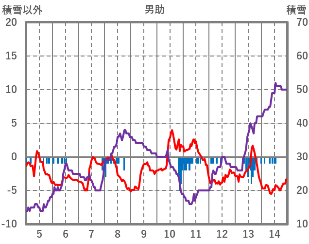 | 日 | 時 | 気温 | 降水 | 風向/風速 | 日照 | 積雪 | 降雪 |