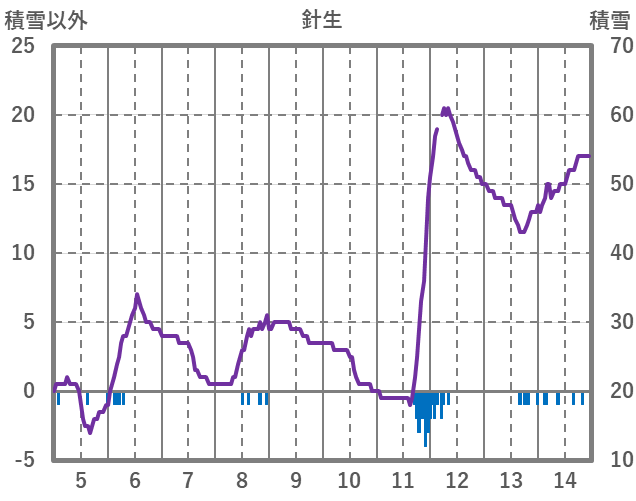 | 日 | 時 | 気温 | 降水 | 風向/風速 | 日照 | 積雪 | 降雪 |