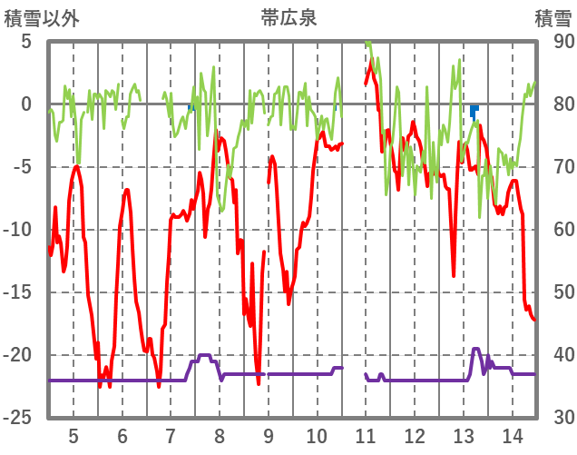 | 日 | 時 | 気温 | 降水 | 風向/風速 | 日照 | 積雪 | 降雪 |