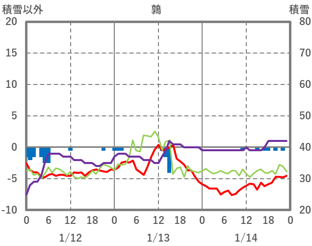 | 日 | 時 | 気温 | 降水 | 風向/風速 | 日照 | 積雪 | 降雪 |