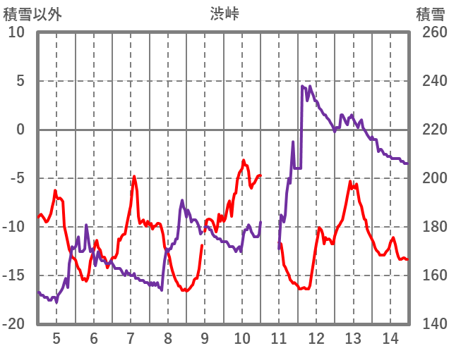 | 日 | 時 | 気温 | 降水 | 風向/風速 | 日照 | 積雪 | 降雪 |