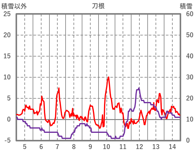 | 日 | 時 | 気温 | 降水 | 風向/風速 | 日照 | 積雪 | 降雪 |