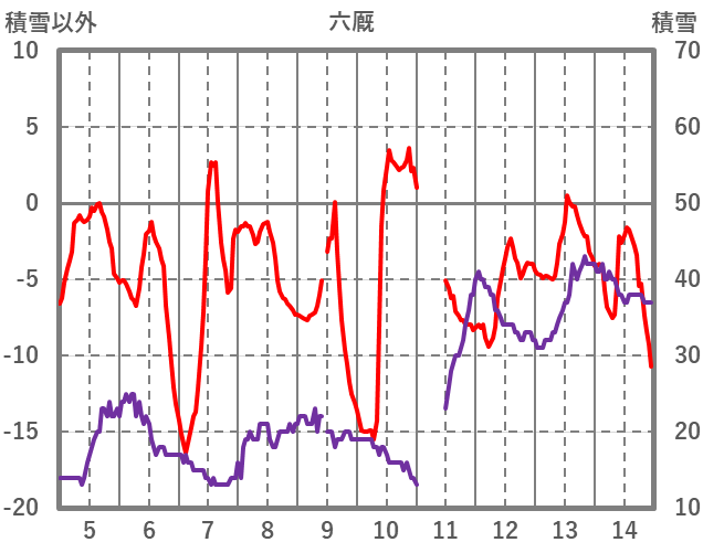 | 日 | 時 | 気温 | 降水 | 風向/風速 | 日照 | 積雪 | 降雪 |