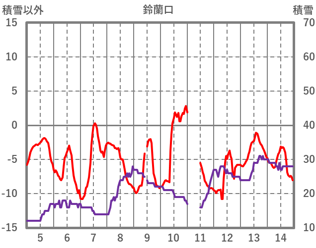 | 日 | 時 | 気温 | 降水 | 風向/風速 | 日照 | 積雪 | 降雪 |