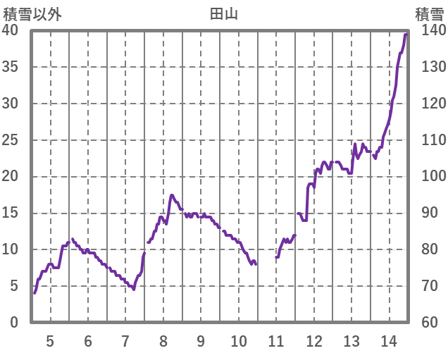| 日 | 時 | 気温 | 降水 | 風向/風速 | 日照 | 積雪 | 降雪 |