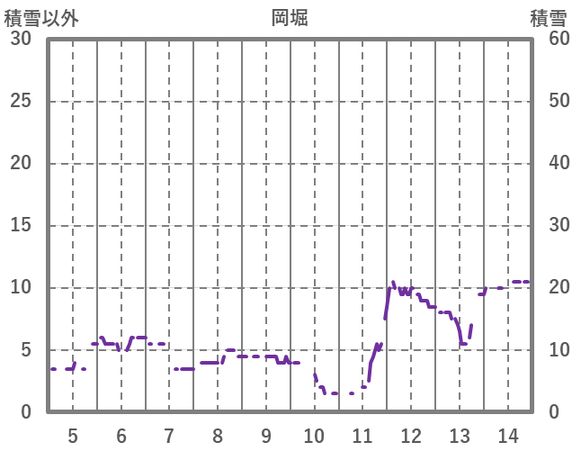 | 日 | 時 | 気温 | 降水 | 風向/風速 | 日照 | 積雪 | 降雪 |