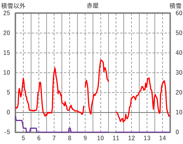 | 日 | 時 | 気温 | 降水 | 風向/風速 | 日照 | 積雪 | 降雪 |