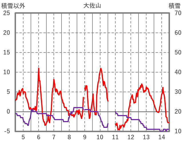 | 日 | 時 | 気温 | 降水 | 風向/風速 | 日照 | 積雪 | 降雪 |